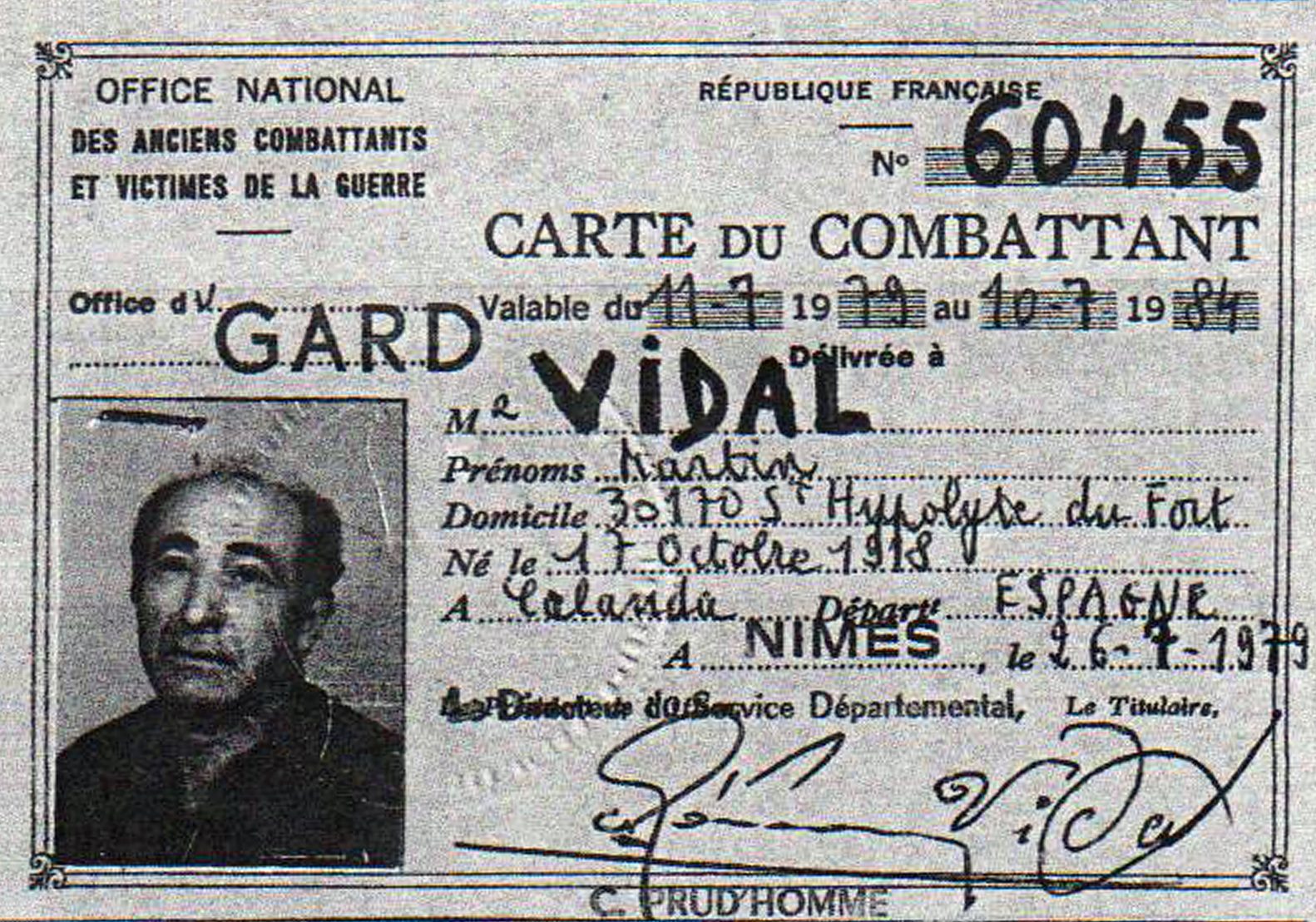 El calandino Martín Vidal rechazó la Cruz de Guerra con estrella de plata concedida por su participación en el maquis del departamento del Gard durante la Segunda Guerra Mundial.