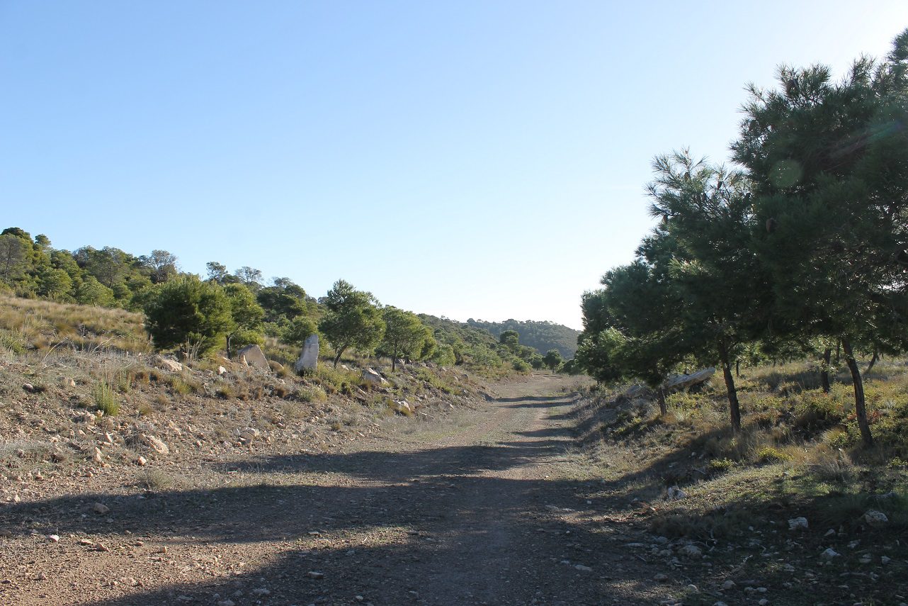 Como decía, iniciamos nuestro recorrido en el camino de Valdurrios. A unos 5 kilómetros de la vía A-230, junto a una finca de frutales, arranca el camino que nos lleva al barranco de Alfaro. Es un trazado en ascenso, suave, tendido y bien chulo que recuerda a los caminos de sierra de otras latitudes. Zigzagueando sube hasta los 300 y muchos metros, lo cual no impide que podamos realizarlo con cualquier coche.