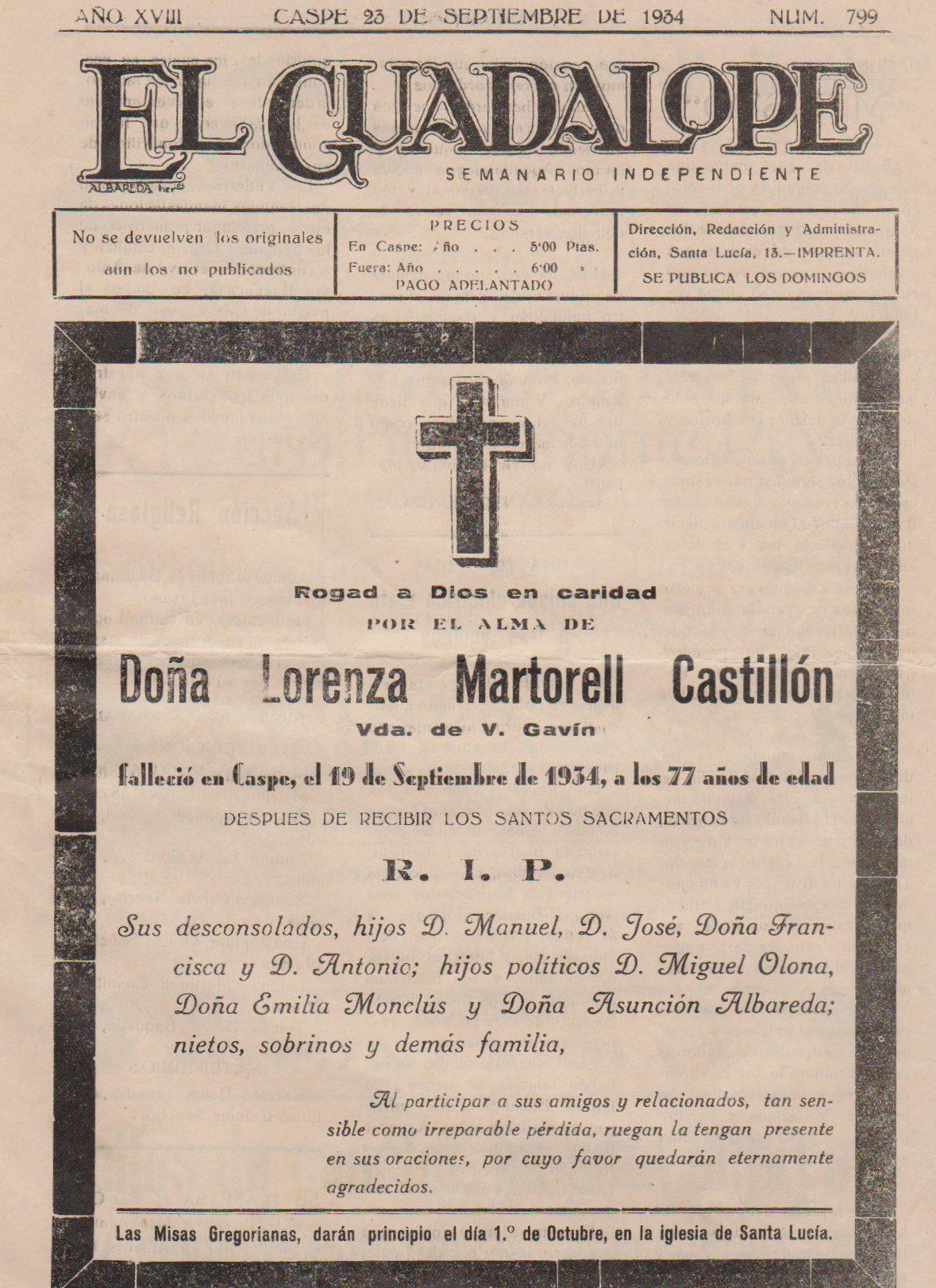Por estas mismas fechas pero ocho décadas atrás, El Guadalope, ya por entonces veterano semanario caspolino, sacaba a la calle su ejemplar número 799. José Latorre Blasco era el alcalde de Caspe, aunque le quedaban pocos días para ocupar el cargo: el día 5 del mes siguiente iba a estallar la Revolución de Octubre y a […]
