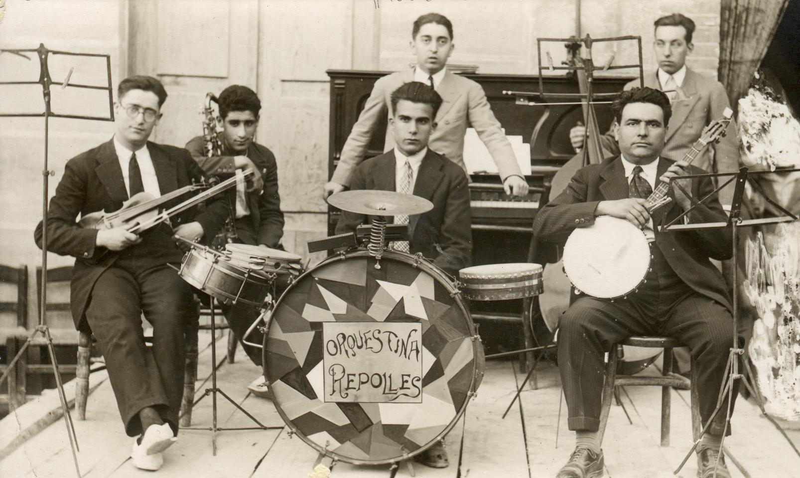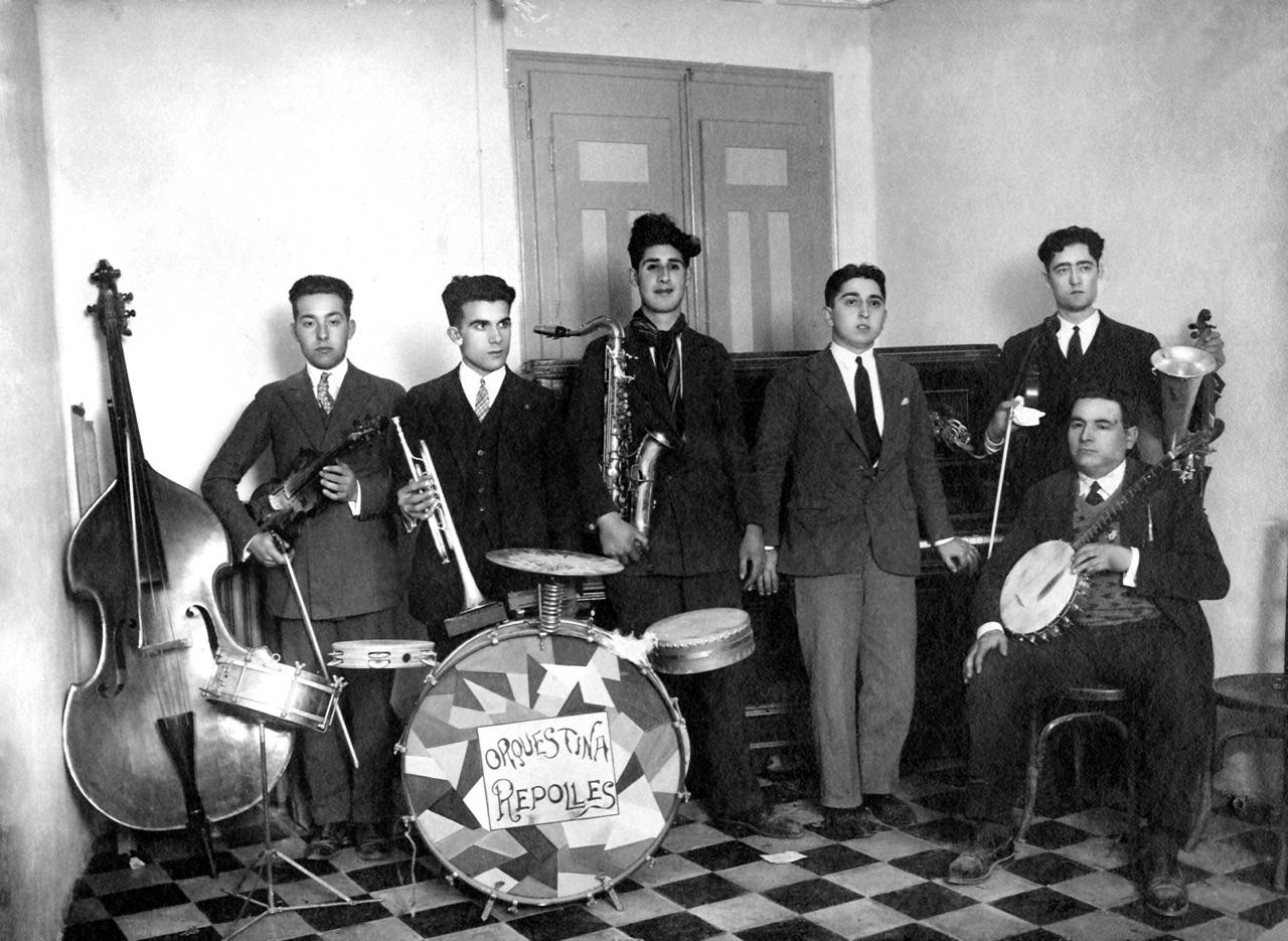 La Orquestina Repollés, cuyo recorrido solo truncará el estallido de la Guerra Civil,[17] colocó encima del escenario, junto al piano del director, a Vicente Barceló Landa (contrabajo), Antonio Caballú Fillola (saxófono y flauta) Guillermo Guillén Gil, Manuel Guiu Burrey (trompeta), Emilio Peralta Villanova (batería y, quizá, saxófono), José Tobeñas Hueso (violín) y a un tal Esteban.[18] En algunas etapas o más coyunturalmente, también colaboraron los músicos Miguel Albiac (banyo), Manuel Andreu, Jenaro Arbonés (batería), Cándido Calvete (violín), Cañares, Lino (trompeta), Agustín Luna (violín) y Juan Triguell (que se anunciaba como drummer, o sea, batería); en fin, “un conjunto interesante y digno de oírse”.