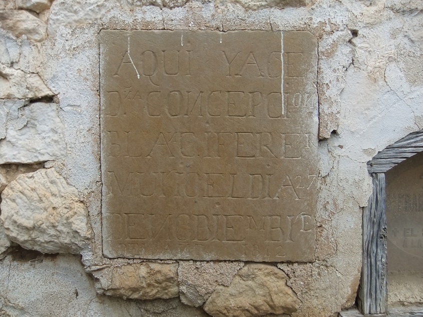 ¿Se trasladaron elementos funerarios de un camposanto a otro? Si así fue, debieron de ser pocos porque hoy solo he podido localizar en el Cazcarro una lápida anterior a la década de los años veinte del siglo XIX, modesta y con esta inscripción: “Concepción Blanc i Ferrer, fallecida 27.11.1812”.