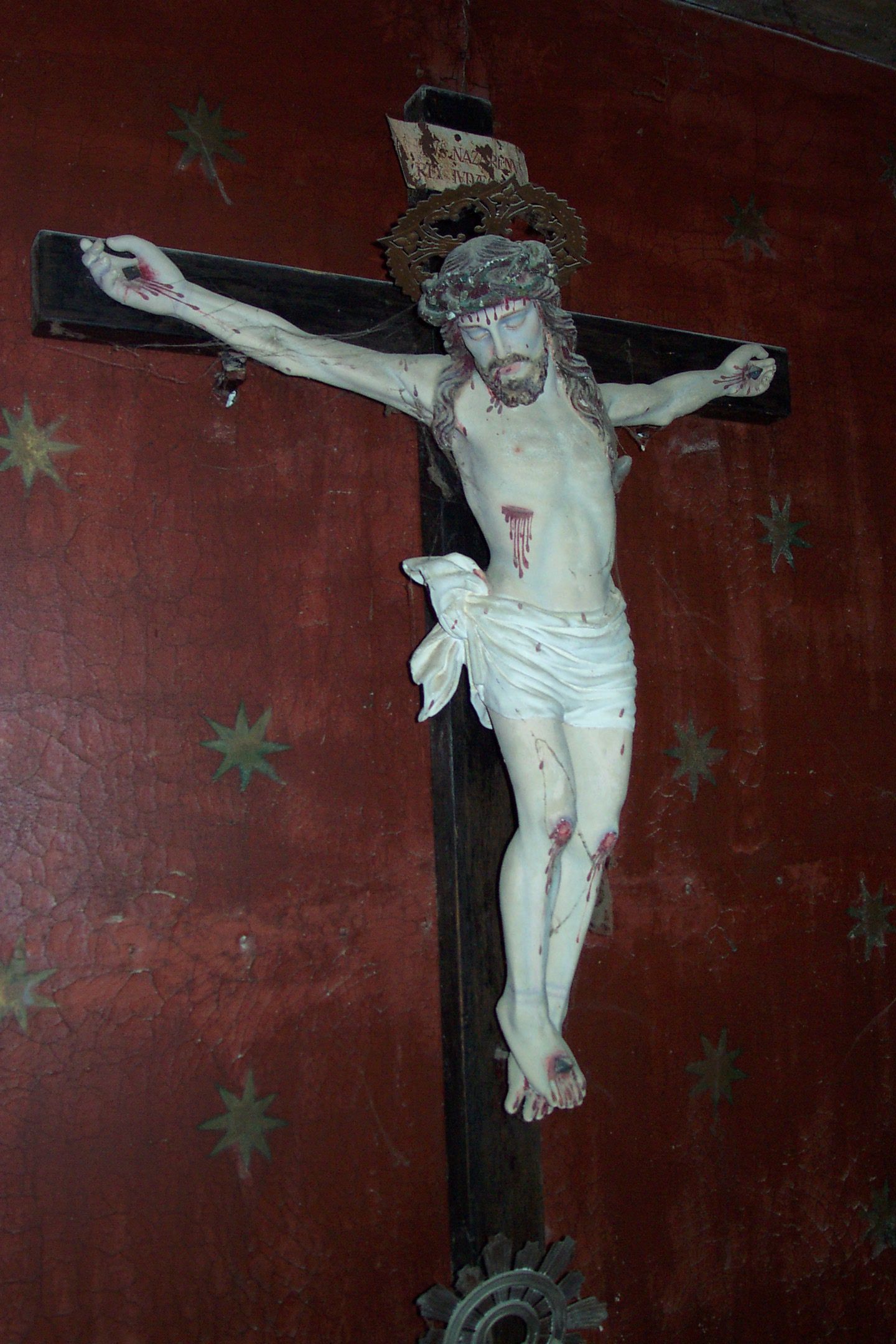 En cuanto a la imaginería, no cabe duda de que, en el XIX, se trasladó a la capilla del Cazcarro el famosísimo Santo Cristo de Santa María de la Horta. Ese crucificado se mantuvo en el templo del cementerio, ininterrumpidamente, hasta que el año 2007, aproximadamente, se optó por sustituirlo por otro (de menos valor) y ubicarlo en un lugar más seguro, la sacristía de la parroquial. Por supuesto, en el último siglo nadie ha sido consciente del valor y procedencia inicial de la obra de arte, detalles en los que ha insistido Antonio Barceló Caballud desde que argumentó sólidamente la hipótesis por vez primera en 1994.[9]
