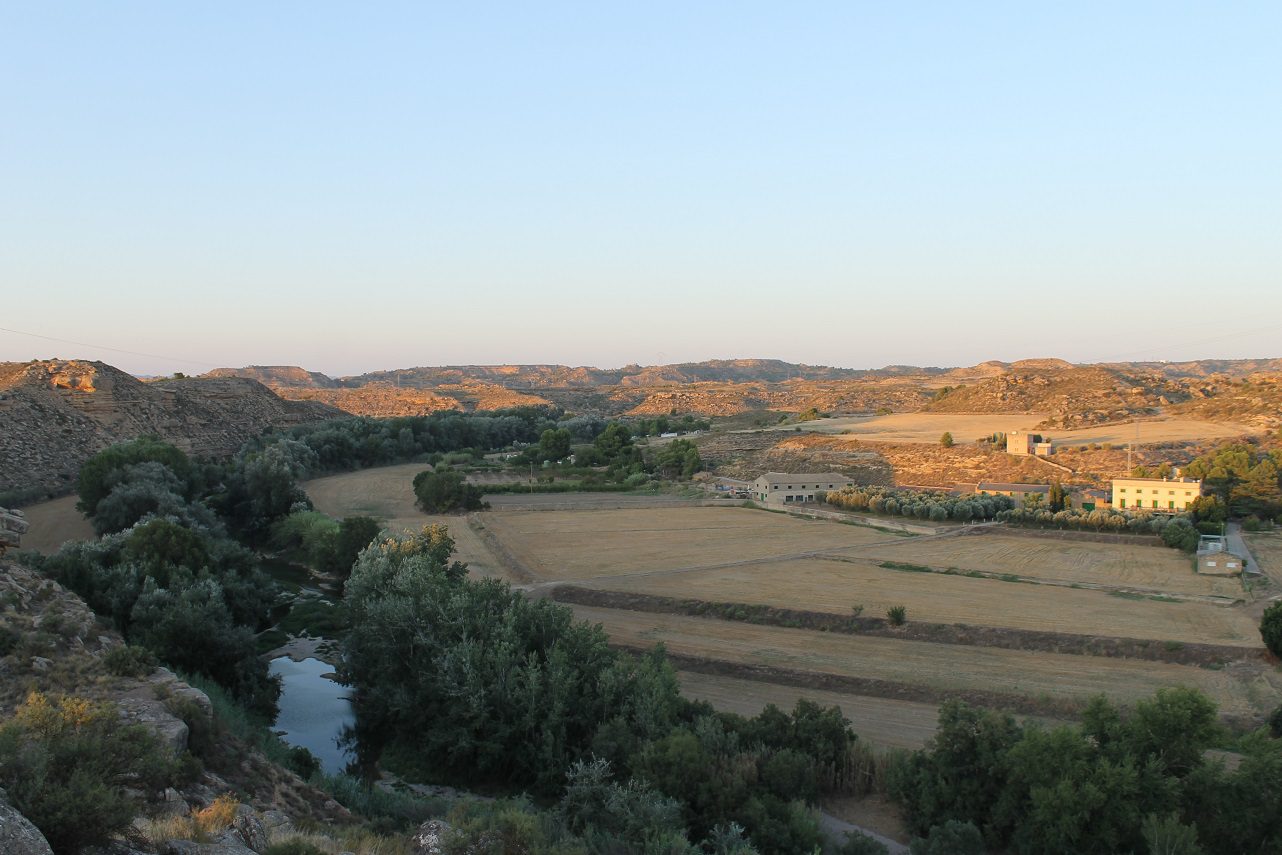 A la izquierda, el río Guadalope. Al fondo, a la derecha, el Palacio