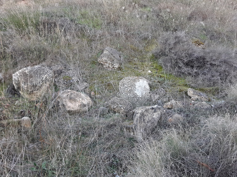 [18] Amadeo Barceló y Alberto Serrano realizamos una visita de reconocimiento el 22.01.2022. Con ayuda de la fotografía de 1932 (la ya mencionada en la que el templo aparece en segundo plano) nos relativamente fácil ubicar el lugar que ocupó el edificio.