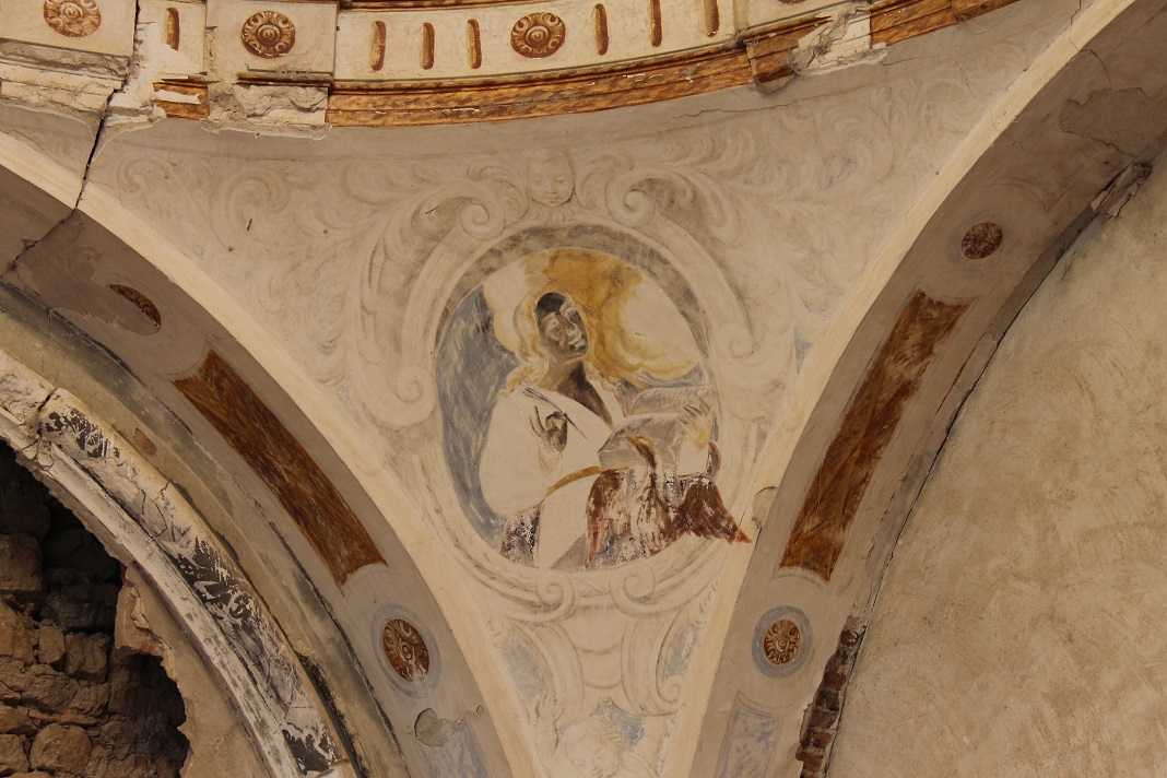 El elemento decorativo más destacable de la iglesia fueron las pinturas de época barroca, probablemente de 1730, tal y como señala la cartela de la nave central. Resisten las del crucero y las de la cúpula del ábside. En este último se distingue un Cristo en majestad vestido con túnica azul y en torno a él diez ángeles músicos preparados para hacer sonar sus instrumentos: si miramos con detención veremos un órgano de tubos, un laúd, un arpa, una partitura o una flauta. Parte de los colores de los grabados todavía se conservan, si bien los rostros, brazos y manos de las figuras se aprecian mucho más deteriorados, probablemente por el uso de plomo en los pigmentos.
